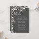 Comience su fiesta de aniversario con nuestra invitación de aniversario de bodas número 25 con un impresionante acento de floritura floral vintage blanco sobre un fondo gris. Para un toque especial, la parte trasera de nuestras invitaciones coordina con el diseño frontal. Invitación perfecta para cualquier aniversario, aniversario de bodas número 30, aniversario número 40, aniversario número 50, aniversario número 10, aniversario número 5, aniversario número 60 o aniversario número 75.