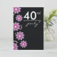 Aquí hay una Invitación a la fiesta de aniversario de bodas de 40 años Trendy Ruby para hacer que el evento sea especial y memorable.Las flores de lavanda sobre un fondo negro añaden un look moderno y elegante a su Invitación de aniversario de bodas.He elegido la opción de papel de fieltro para dar un acabado en relieve y añadir un toque de clase.¡También puedes consultar más tipos de papel!