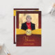Invitaciones personalizadas a la fiesta de cumpleaños — invitaciones para fotos de bolsillo totalmente personalizable con fondo rojo vintage y elegante botón Monograma en cinta dorada. Añada su propia foto y personalizar el nombre, fecha y detalles para la feliz ocasión. Perfecto tanto para fotos contemporáneas como antiguas. Sobres de juego, franqueo y tarjetas de agradecimiento disponibles.**NOTA Tamaño para tarjetas de invitación Standard 5 x7. Otros tamaños y estilos disponibles en la galería.