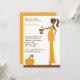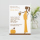 Una moda de una ducha de bebé invita a una silueta que mamá va a llevar con un adorable traje de calabaza.
