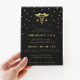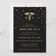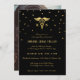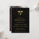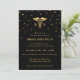 Clásicas invitaciones a la fiesta de graduación de la escuela de oro y enfermería negra. ¡Perfecto para celebrar a una nueva enfermera! Confeti sofisticado y símbolo caduceus con "RN" en un efecto impreso en oro sumergido.