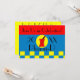 Elegante Graduación Farmacéutica Invitaciones rojo, azul y amarillo fondo a juego con el diseño de mortero y almirez. "Únete a nosotros en la celebración", 20XX Pharm-D, moderno y retro letras en negro parisino. Postal de correspondencia disponible en nuestra tienda.