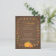 ¡Estemos agradecidos juntos! Invite a sus huéspedes a un fiesta de cena de agradecimiento con esta moderna, elegante y elegante invitación de otoño. El diseño viene con un fondo marrón oscuro con un borde de hojas de otoño y otoño en varios colores y formas. También incluye viñas, bellotas y calabazas. La paleta de colores naranja, marrón y verde le confiere un encanto rústico. Personalice fácilmente los detalles de su fiesta.