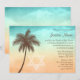 Invite a sus huéspedes a su Bat Mitzvah, de temática playa, con esta invitación única. Con un cielo tropical azul y un color de arena en la playa con un ilustracion marrón de palmeras. El luau beach fiesta Bat Mitzvah es un lugar elegante y de moda.