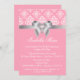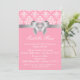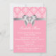 Una elegante invitación a la primera comunión con damasco con una cinta de plata y un arco decorado con una cruz. Mostrado en rosa, plata y blanco. Moda y elegancia. Cambie fácilmente el fondo y los colores del tipo de letra o vuelva a colocar el amortiguador para permitir más texto.