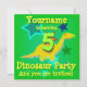 Invite a todos sus amigos a su fiesta de cumpleaños de 5 años de dinosaurio con esta colorida invitación para la fiesta de cumpleaños de personalizable. Un adorable personalizado de dinosaurios amarillos Diplodocumentales, y estrellas de color con texto personalizado: "Tu nombre" cumple 5 años, hay un Fiesta de dinosaurio y ¡estás invitado! En la parte trasera un feliz fiesta de dinosaurios en un paisaje prehistórico de la era de piedra con árboles, montañas y volcanes con estrellas de color y texto de personalizable: Fecha del evento, hora del Fiesta, dirección del Fiesta y R.S.V.P. a y número de teléfono. Estas interesantes invitaciones de fiesta de dinosaurios son personalizable completo, agregar y personalizar con sus textos e imágenes! ¡Una gran invitación a la fiesta de los dinosaurios!