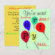Sorpresa 40 cumpleaños o cualquier año hito. Globos de cumpleaños coloridos volando en amarillo verde azul naranja rojo. fondo verde de menta con luz de bonito. Las cartas fiestas se escriben a través de globos. Perfectas invitaciones de diversión para la fiesta de cumpleaños 40 o CUALQUIER hito Cumpleaños para hombres o mujeres! El fondo tiene la fecha de fiesta y los detalles de ubicación en un fondo amarillo. Diseño original de obras de arte de TamiraZDesigns.