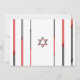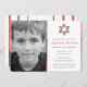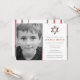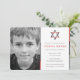 Guay, invitaciones modernas del bar de fotos Mitzvah. Personalice en línea la foto de su hijo y los detalles de Mitzvah. Estrella de David diseño con acentos modernos rojos, negros y grises.