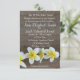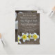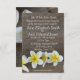 Invitaciones a Personalizados de Bodas Frangipani Beach. Un magnífico diseño rústico y tropical para cualquier boda en la playa con flores de plumería. El fondo de la madera le da un toque de estilo antiguo a su boda isleño moderno.