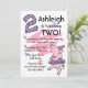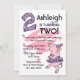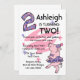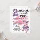 Celebre el segundo cumpleaños de su pequeña niña con estas adorables invitaciones personalizados de fiesta con un cerdo rosa vestido con una polka morada punteada tutu y gorra fiesta, una gran polka salpicada número dos y fondo divertido. Personalízalo como quieras. También hay disponibles sellos postales, tazas, pegatinas y camisetas para bebés. ¡PinkInkArt original!