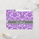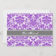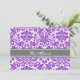 El Personalizado Bat Mitzvah invita al partido en un elegante y luminoso patrón de damasco floral clásico morado, gris y blanco. Añada su nombre y detalles de fiesta para una invitación única y elegante del partido Bat Mitzvah.