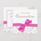 Una elegante invitación de Quinceanera con copo de nieve de plata con un ilustracion de lazo rosado caliente. Perfecto para una fiesta de cumpleaños Quinceanera con temática invernal. ¡Fácilmente personalizar con los detalles de su fiesta! Los diseños son ilustraciones/gráficos impresos - NO RIBBON REAL.