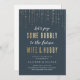 Invitaciones de la fiesta de compromiso con un brillante diseño de Relieve metalizado de oro falso. El texto dice: "Dejemos algo de burbuja, a la futura esposa y maridito". Personalizar el color de fondo y la redacción.