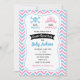 Chevron Blue & Pink Gender Reveal Invitación, con princesa o pirata.