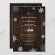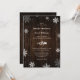 Esta rústica invitación a celebrar bodas de invierno con copos de nieve y campanas de navidad sobre un fondo de madera de granero es perfecta para invitar a sus invitados a su rústico fiesta de bodas de invierno.