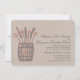 Invitaciones a la boda rústica de Whiskey Barrel of Trieat Country. El ilustracion de barril de whisky dibujado a mano tiene colores de coral grises y melocotón. El tipo de letra también es gris, pero se puede cambiar a cualquier color usando el botón "Personalizar". El fondo es un diseño de papel kraft. Estas invitaciones son perfectas para una boda rústica de campo. Artículos coincidentes: invitaciones a bodas rústicas, invitaciones a bodas rurales, campo rústico, barril de whisky, barril de madera, barril de flores, trigo, boda rural