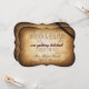 Invitaciones a bodas de bodas de antigüedades con un fondo marrón angustiado con movimientos florecientes desvanecidos alrededor de los bordes y una cinta impresa en una esquina. El diseño tiene un estilo tipográfico, con diferentes tipos de letra y tamaños, lo que le da un aspecto moderno, pero antiguo estilo vintage. Se puede cambiar el texto de la invitación a la boda, pero actualmente dice "Estás cordialmente invitado a venir a celebrar mientras {Bride} y {Groom} se están quedando boquiabiertos..."Esta invitación a la boda es perfecta para cualquiera que busque una antigua apariencia añeja angustiada. Elija entre una variedad de formas de corte y tipos de papel.