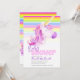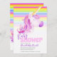 Invitaciones a la ducha de bebé arco iris, con una pintada de una hermosa y caprichosa unicornio. Personalice los detalles de la ducha para bebés. Dibujo único, arte acuático y diseño de Sarah Trett www.sarahtrett.com para www.mylittleeden.com