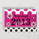 Invitaciones a la fiesta de graduación de enfermeras 2013, rosa oscuro y gris con puntos de polka negro con flores retro y diseño de estetoscopio. Invitaciones al Personalizable.