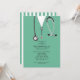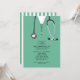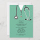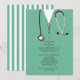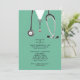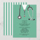 Una creativa fiesta de graduación de la escuela de medicina invita a los estudiantes de los hospitales y al estetoscopio. Editar texto para crear una invitación de grupo médica única.
