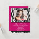 Invitaciones de fiesta de Personalizado de cebra rosa de moda, ¡estupendo para cualquier edad o año! Personalizar esta elegante invitación animal con tu nombre, foto, edad e información fiesta. Rosa ultra caliente con rayas de cebra en blanco y negro y escritura femenina. ¡Úsalo para tu 21 cumpleaños, o cualquier año!