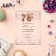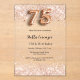 Una invitación moderna, elegante y glamurosa para una fiesta de cumpleaños número 75. Un fondo claro y transparente con un rosa de oro confetti. El nombre está escrito con una escritura de estilo con letras a mano moderna. Personalice y agregue los detalles de su fiesta. El número 75 se escribe con un tipo de letra, guión.