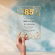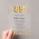 Una invitación moderna, elegante y glamurosa para una fiesta de cumpleaños número 85. Un fondo claro y transparente con falsas estrellas de oro. El nombre está escrito con un guión de estilo con letras a mano. Personalice y agregue los detalles de su fiesta. El número 85 se escribe con un tipo de letra, guión.
