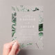 Celebra tu amor con nuestra invitación a la boda de Abundant Greenery, mostrando los detalles de tu boda enmarcados elegantemente por una rica frontera de eucaliptos, helechos y exuberante vegetación sobre un fondo acrílico transparente. Perfecto para bodas en cualquier temporada, esta moderna invitación botánica le da un toque natural y atemporal a su celebración boda.