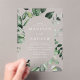 Invite a nuestros huéspedes con nuestras elegantes invitaciones a bodas de Abundant Greenery, en las que se presentan los detalles de sus bodas enclavados en un marco ovalado rodeado de exuberantes eucaliptos, helechos y una vibrante vegetación sobre un fondo acrílico transparente. Estas modernas invitaciones botánicas de boda aportan una elegancia intemporal y son perfectas para cualquier temporada, añadiendo un toque fresco e inspirado en la naturaleza a su celebración.