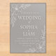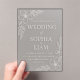 This modern acrylic wedding invitation exudes timeless sophistication with its clear, frosted finish and crisp white floral etching. Delicate botanical accents frame the edges, creating a graceful balance between minimalism and romance.