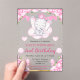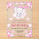 Invitaciones Acrílicas Acuarela Cute Elefante y Rosas Rosa Cumpleaños
