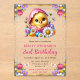 Elegante acuarela Chick de Pascua de Huevo diseño floral con flores de primavera rosadas, violetas y amarillas con fondo de rayas rosas