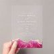 Una invitación de boda vibrante y sofisticada con un impresionante diseño de ágata dorada y rosa caliente. Los audaces tonos rosas, realzados por acentos dorados brillantes, crean una estética moderna y elegante. Perfecto para parejas que buscan hacer una declaración elegante y memorable para su día especial.