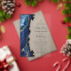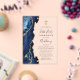 El borde izquierdo de esta elegante y moderna invitación a la primera comunión cuenta con una barra acuática azul marino bordeada por un falso purpurina de oro. Una falsa cruz de Relieve metalizado dorado aparece encima del texto del personalizable, que combina escritura a mano, copperplate y tipografías cursivas en gris carbón sobre un fondo claro.