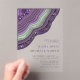 No todos los diseños bodas se crean iguales. Los diseños asimétricos de las piezas en este conjunto impactante de bodas demuestran que eso no es malo. Bandas onduladas de color en contrastantes tonos violeta y verde, con un centro de brillantes cristales forman un acento geodésico/agato en la mayoría de las piezas del conjunto. La invitación a la boda acrílica que se muestra aquí incluye lo anterior más una plantilla para añadir los detalles pertinentes de su evento boda. Buscar ID647 para ver todas las piezas de coordinación de este conjunto.