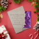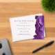 El borde derecho de este moderno y elegante, salvo la tarjeta de fecha, tiene un borde de agujeros color morado recortado con un falso purpurina plateado. El texto del personalizable combina fuentes serif de color gris carbón y fuentes de copperplate en un fondo transparente claro.
