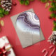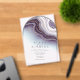 Una llamativa combinación de una berenjena profunda, amatista, agate de mármol azul y blanco suave, texturado con falsos cristales y resaltado en oro brillante, crea el fondo de las piezas de esta colección coordinada. Una fuente serif limpia y moderna y unas puntas doradas salpicadas completan este llamativo estilo de diseño. Esta elegante invitación a una boda acrílica en forma de arco, presenta todo lo anterior con un suave fondo acuático y una plantilla para añadir fácilmente los detalles del evento. Vea el vínculo de colección en esta página para ver todos los elementos coincidentes de este hermoso diseño o busque ID825 para ver opciones de color adicionales para este conjunto.