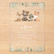 Invite a sus amigos y familiares con estilo y establezca el tono de su día especial con esta encantadora invitación a la ducha de bebé. El diseño incluye animales de bosque (oso, zorro, mapache, peón) y vegetación.