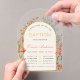 Invitaciones Acrílicas Arch Girl Baptism Gold Cross & Wildflowers Floral