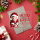 Classy, understated and elegant "Merry and Bright" holly and script text design featuring your arched photo and beautiful red text and details
