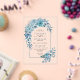 Esta impresionante invitación a bodas en arco de boho presenta flores y hojas azules verde azuladas y acuáticas, lo que lo convierte en una elección ideal para invitar a los huéspedes a su día especial. El elegante diseño resalta un armazón adornado con dahlias y rosas en tonos azules, añadiendo un toque sofisticado a la celebración de su boda.