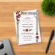 Invitaciones de boda de acrílico de otoño con una elegante exhibición floral en acuarela rosa y rojo borgoña marsala en un arco de boda de madera rústica, un corazón tallado con las iniciales de la pareja, y una plantilla de invitación de matrimonio moderna.