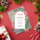 La invitación a la boda en forma de arco acrílico bohemio presenta un diseño floral que combina con gusto elementos bohemios con ramas folclóricas y flores retro, lo que da lugar a una estética peculiar y divertida. Los colores combinan el verde oscuro y la menta con el melocotón, el lilo y el magenta, creando un estilo folclórico encantador y sofisticado. El texto con los nombres de la pareja en tipografía audaz está dentro de un arco con contorno de melocotón.