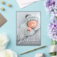 Un anuncio de nacimiento acrílico de keepsake con una foto de tu recién nacido con un superpuesto de "Bienvenida" en un guión blanco elegante. Añada el nombre, la fecha de nacimiento y las estadísticas de nacimiento de su bebé.