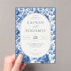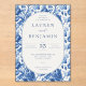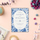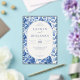 Celebrate your union with elegance and serenity through our “Azure Blooms” collection—where vibrant blue toile patterns meet refined design to bring your wedding vision to life. This collection features an elegant style with a cohesive blue toile floral theme, perfect for weddings. The artwork is characterized by intricate botanical designs in varying shades of blue and white, creating a sophisticated and timeless look. Recurring motifs include lush flowers and foliage, which adorn various items such as invitations, tableware, wine labels, menus, and thank you cards. These elements are meticulously arranged to evoke a sense of romance and refinement. The versatility of the design allows it to be applied across multiple product types, ensuring a harmonious aesthetic throughout the wedding celebration.