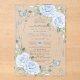 Personalize this elegant baby blue roses floral Quinceañera / Sweet 16 birthday acrylic invitation easily and quickly. Simply click the Edit Using Design Tools button to further edit the texts, change fonts and fonts colors. Featuring soft watercolor baby blue flowers, butterflies and a silver princess crown. Perfect for quinceanera, sweet sixteen, 18th birthday, debutante ball and many more occasions! Matching items available in store. (c) Somerset Fine Paperie