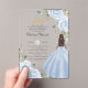 Personalize this elegant baby blue floral Quinceañera / Sweet 16 birthday acrylic invitation easily and quickly. Simply click the Edit Using Design Tools button to further edit the texts, change fonts and fonts colors. Featuring soft watercolor baby blue flowers, a girl dressed in a lovely baby blue ball gown and a gold princess crown. Perfect for quinceanera, sweet sixteen, 18th birthday, debutante ball and many more occasions! Matching items available in store. (c) Somerset Fine Paperie