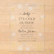 Invite a los huéspedes con estilo con esta invitación acrílica de Baby It's Cold Outside con copas de nieve de oro. Con elegantes copos de nieve de oro y helados detalles de invierno, este diseño es perfecto para una ducha de bebé de invierno, celebración de vacaciones o reunión de temporada. El claro formato acrílico añade un toque moderno y sofisticado, creando una bonita invitación a conservar el sake que le da un tono cálido y invernal a su evento.