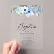 Invitaciones Acrílicas Baptismo de bebé con flores azules