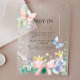 ¡Celebra la llegada de una niña pequeña con este bebé con tema Vintage Baby in Bloom Wildflower Bow Baby Shower Invitación acrílica! Este encantador diseño está decorado con un arco, mariposas y flores de colores rosa, azul y verde, perfecto para una ducha de bebé. Es un fiesta de temática chica. Personalizar los detalles sin esfuerzo para crear la invitación perfecta para tu evento especial.